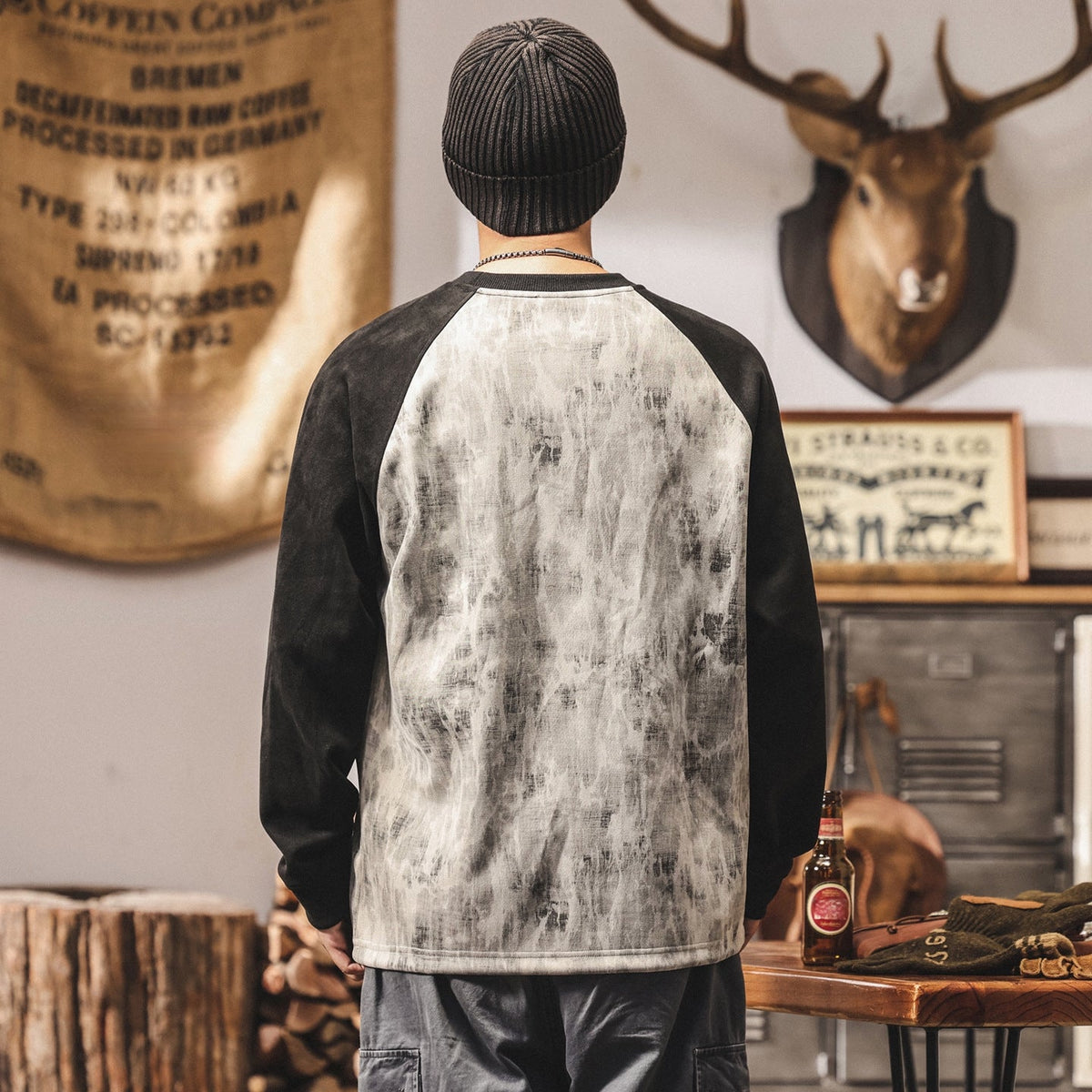 Suede Sweatshirt with Raglan Sleeves - M