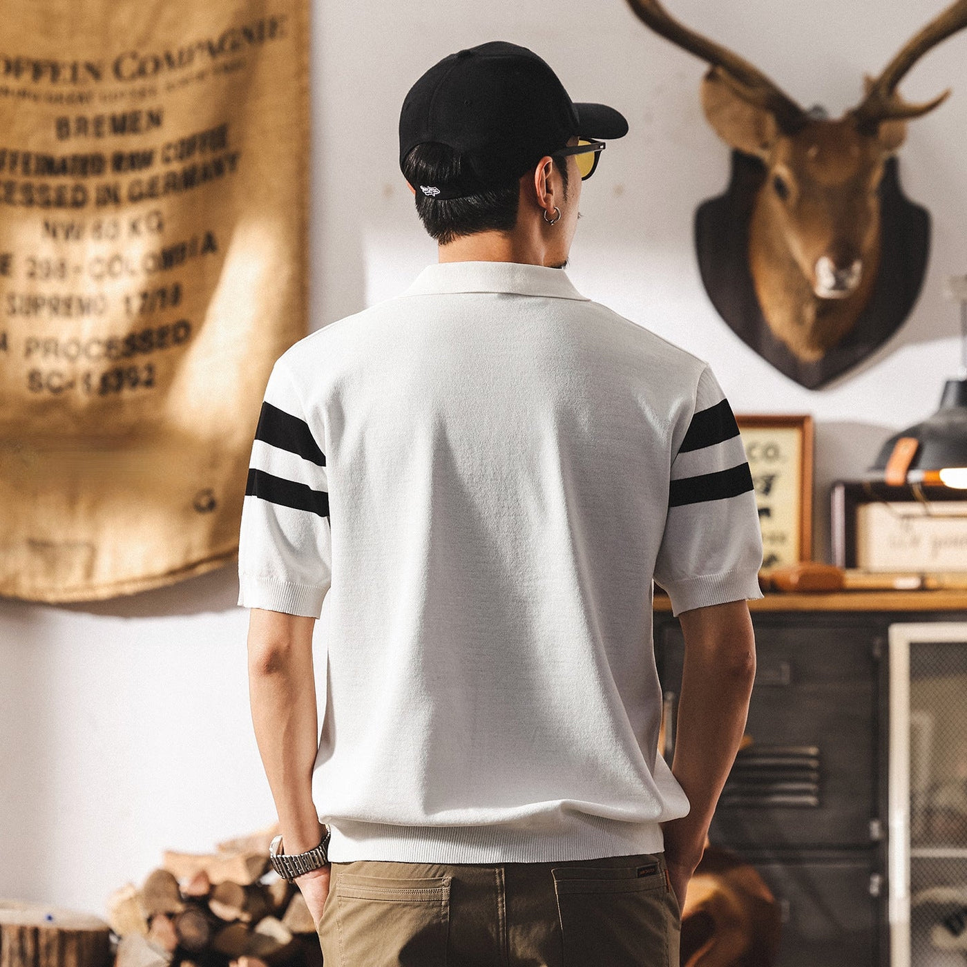 Varsity Stripe Knit Polo in Black