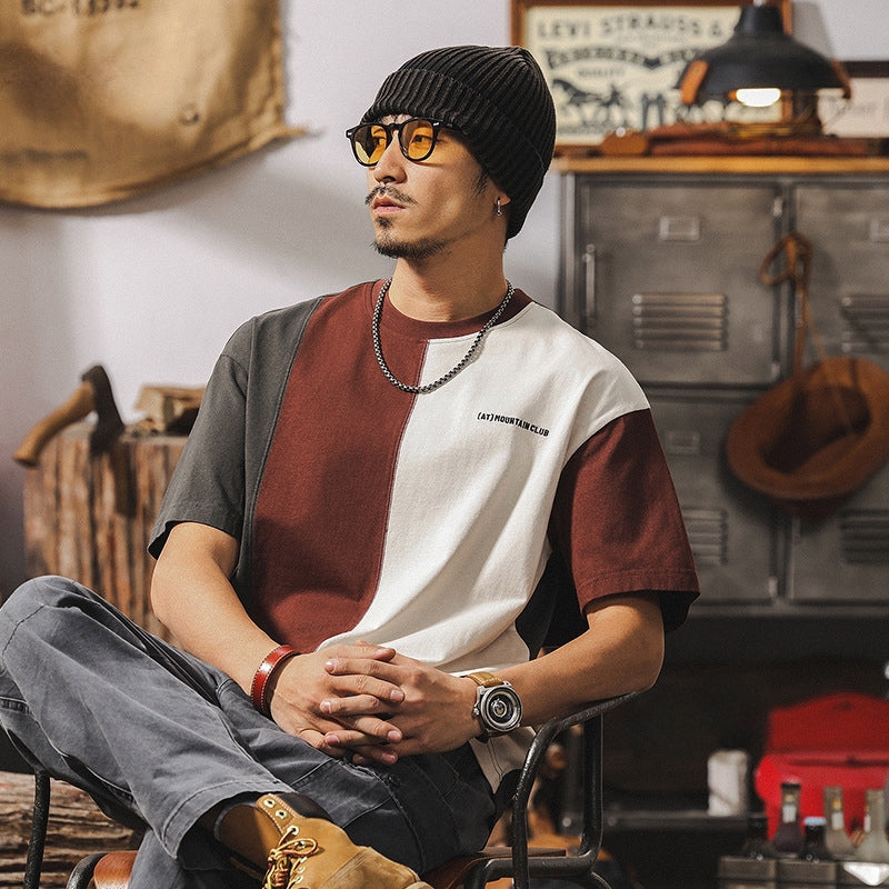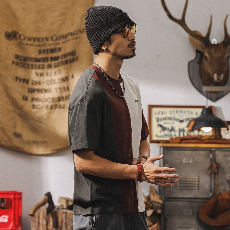 Contrast Two Tone T-shirt in Earthly Colors - M