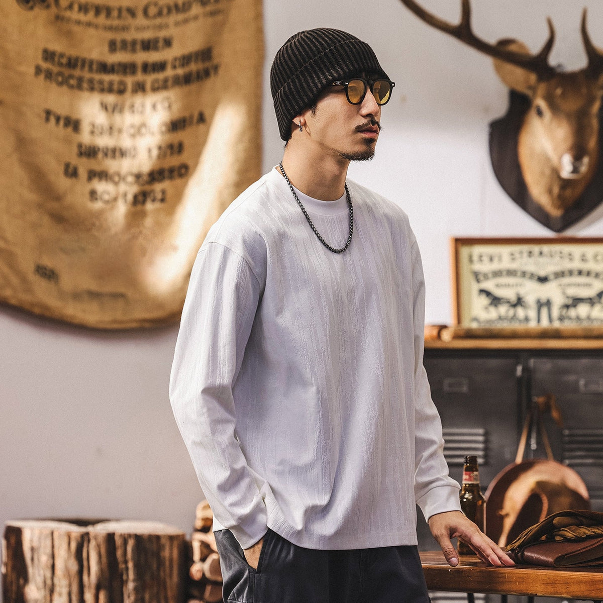 Tree Grain Texture Dropped Shoulder Sleeve Tee