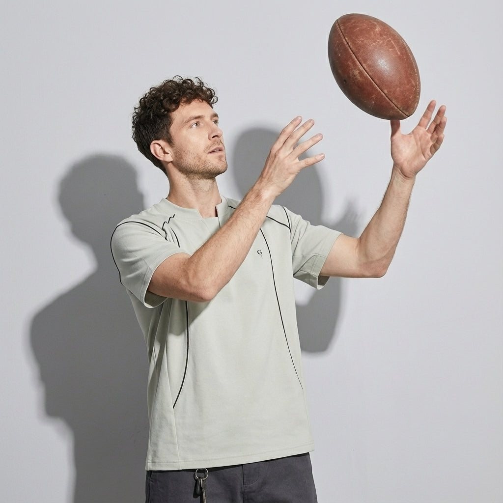 The T-shirt is made using a single integrated plush fabric — a one-piece construction that’s more eco-friendlymore breathable, and more durable.