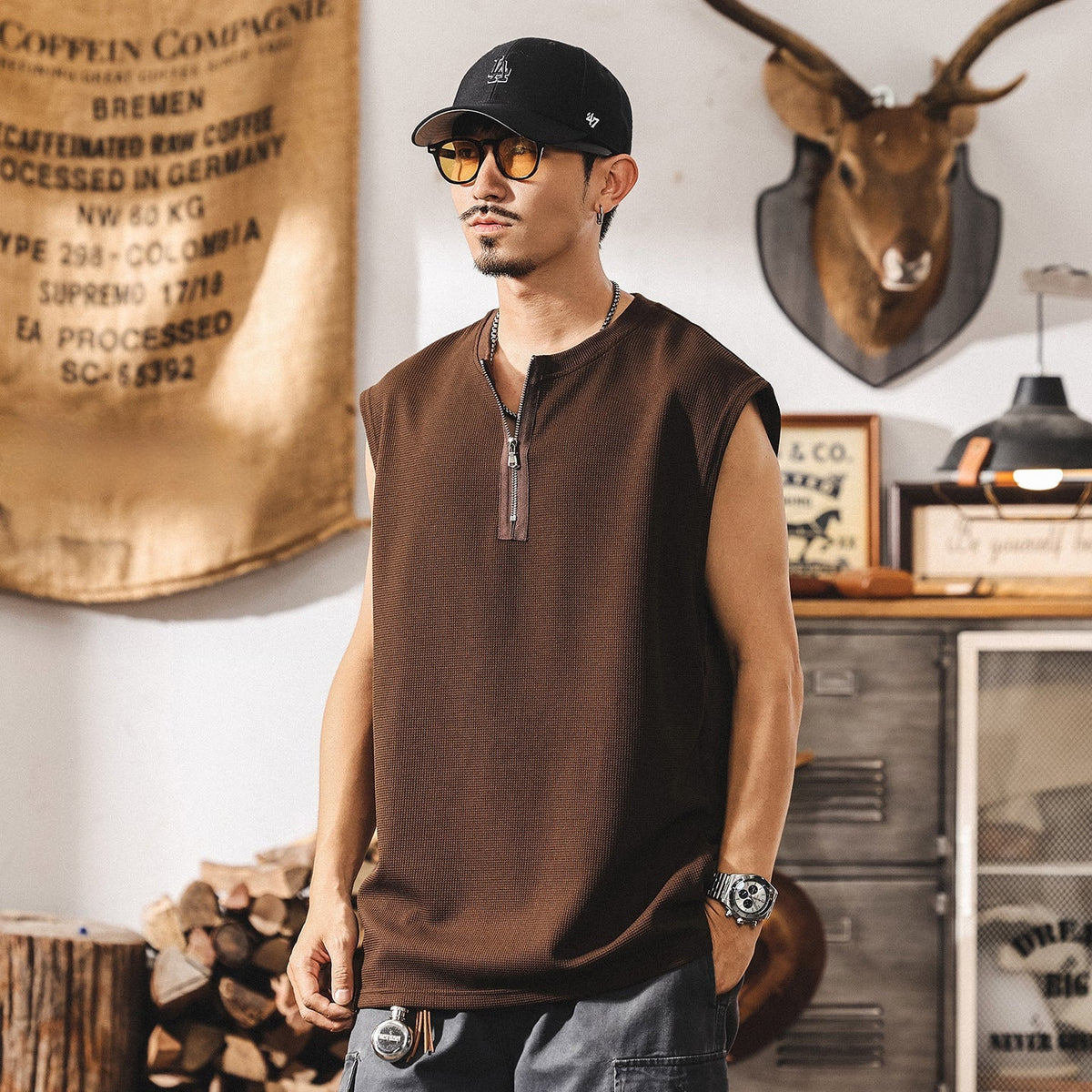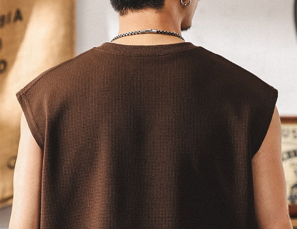 Waffle Grid Zip T-Shirt Vest in Brown - M